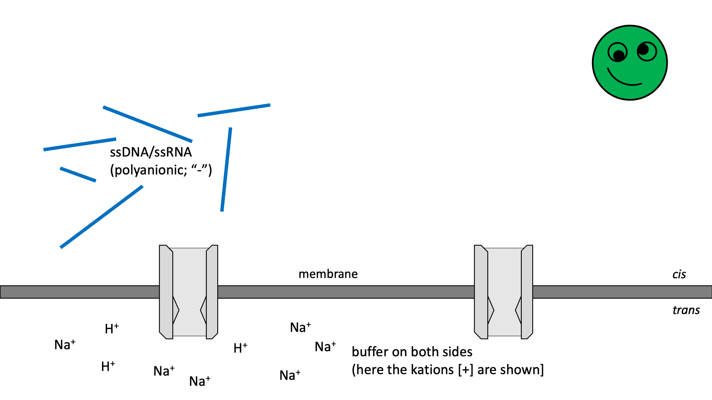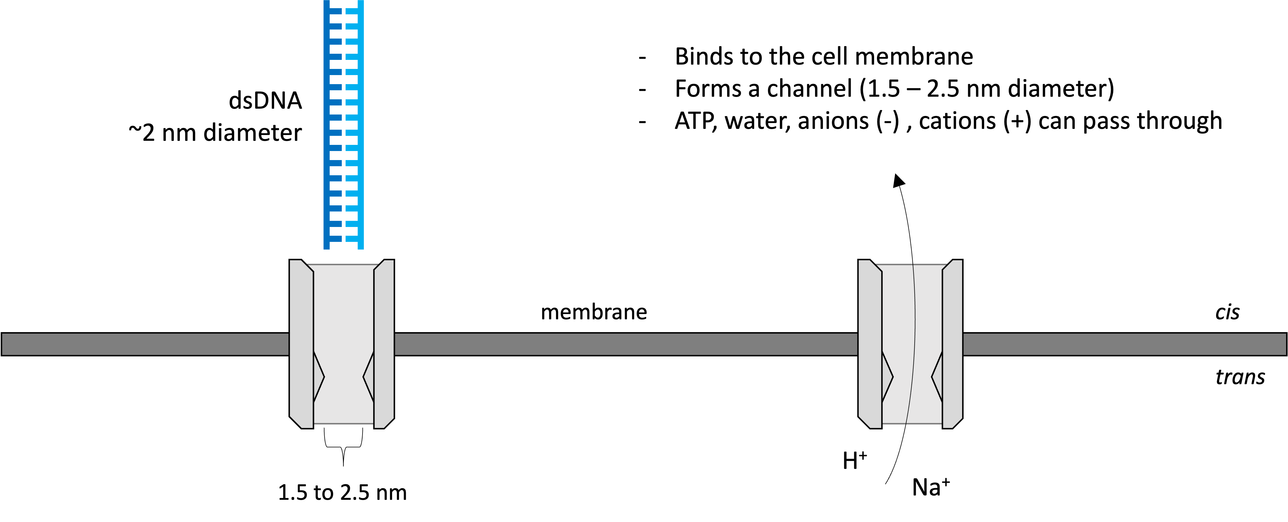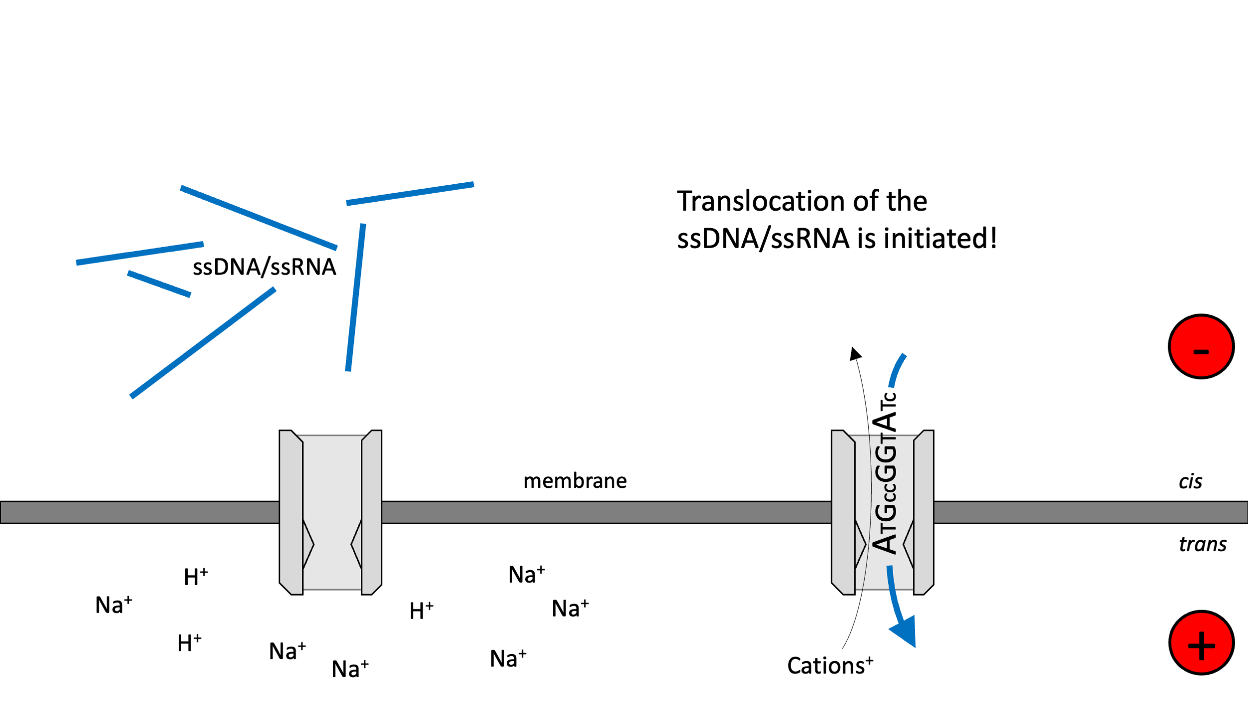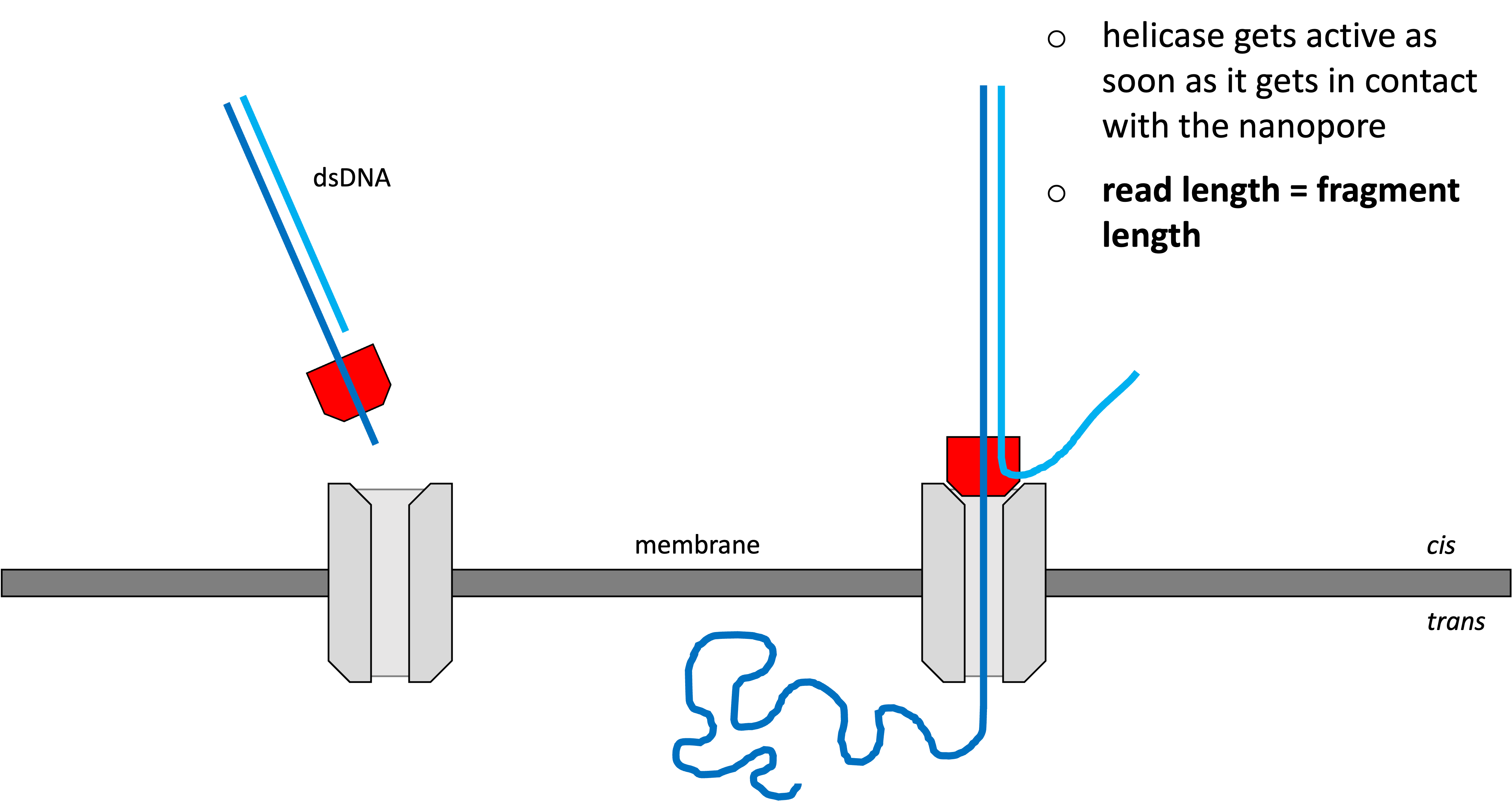 Idea: Push DNA through a small gap (pore) in a membrane and detect each nucleotide as it passes by.